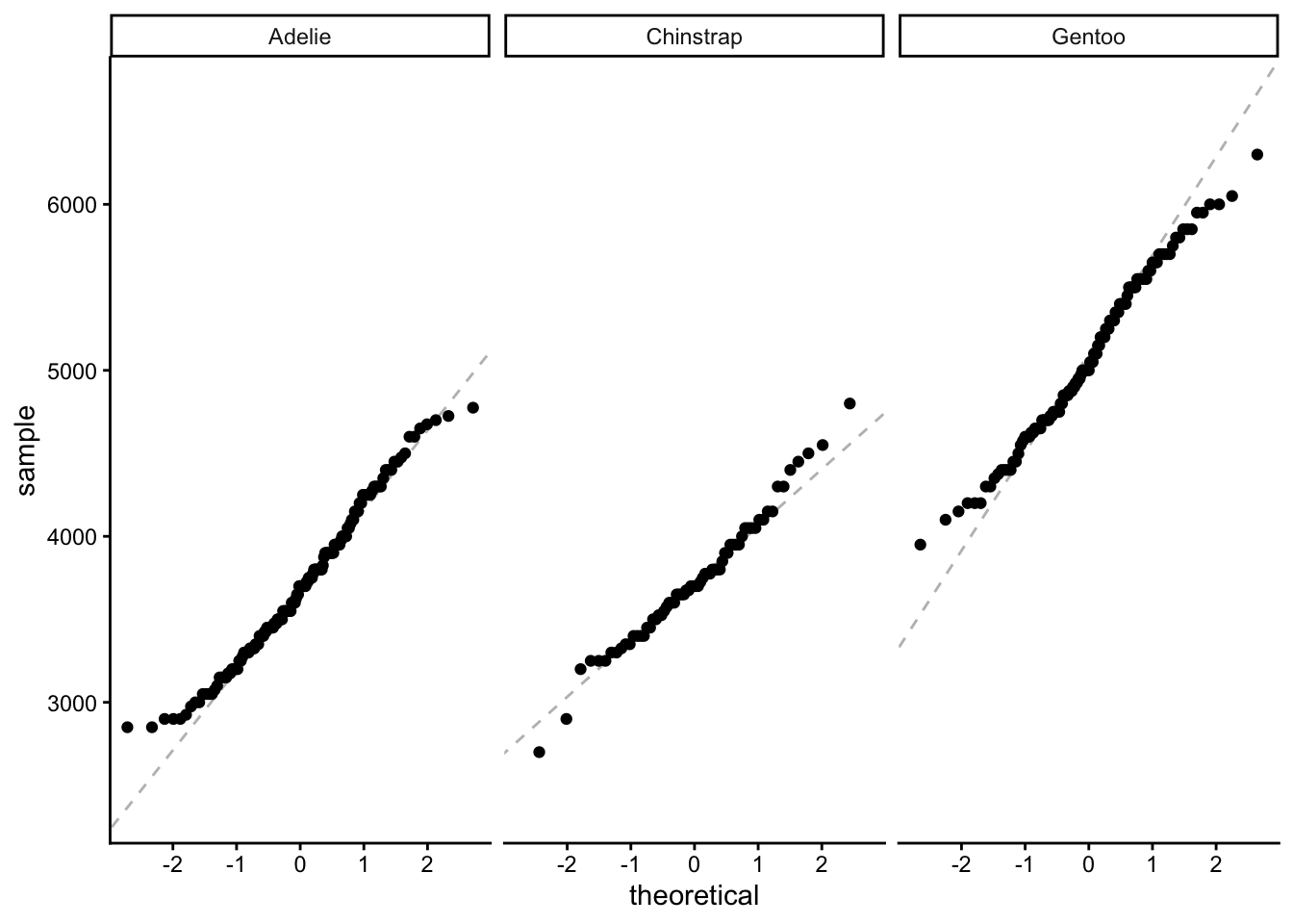 aes(sample = body_mass_g)) + # argument for a QQ plot