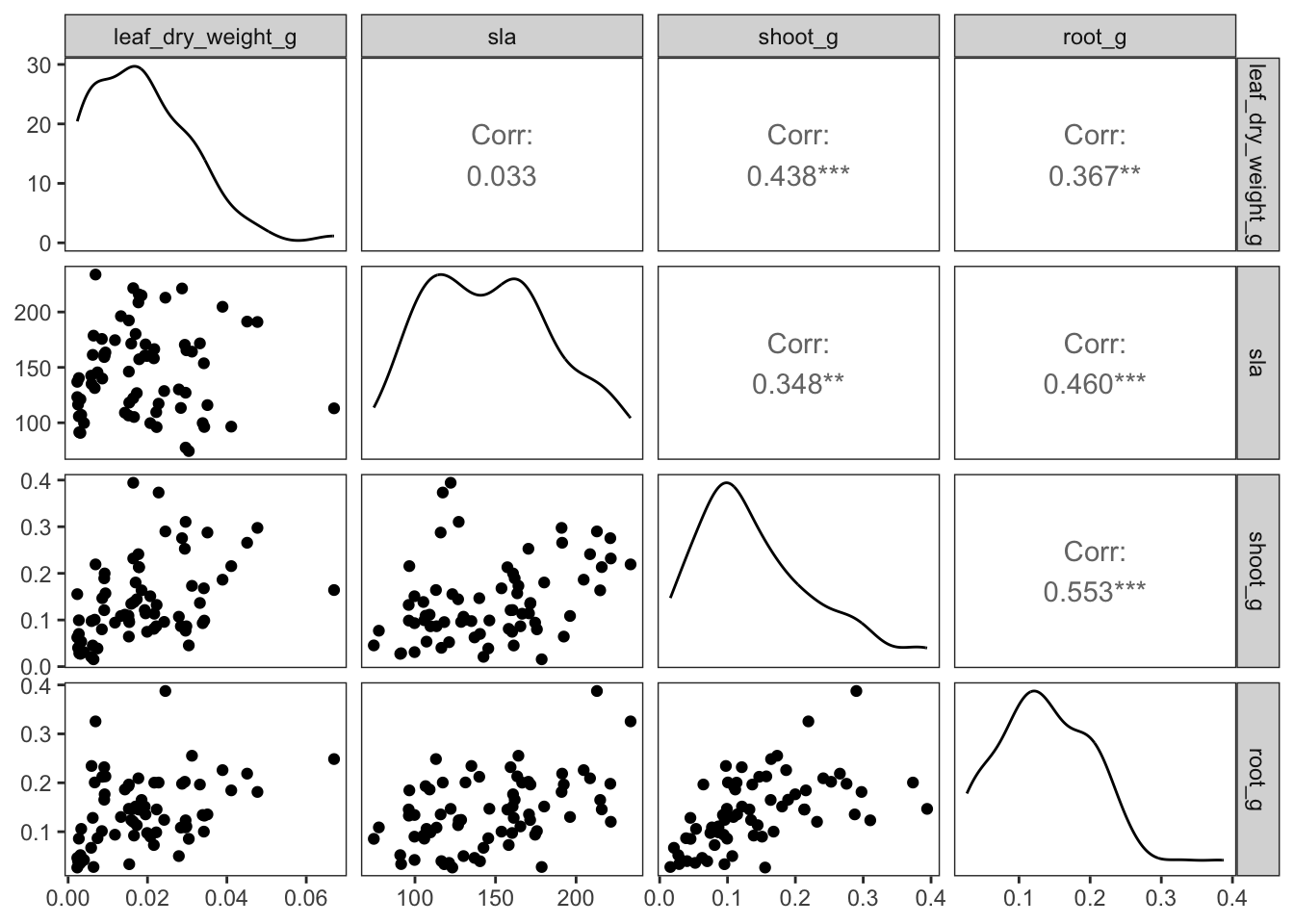 plant_model_all <- lm (total_g ~ leaf_dry_weight_g + sla + root_g + shoot_g,