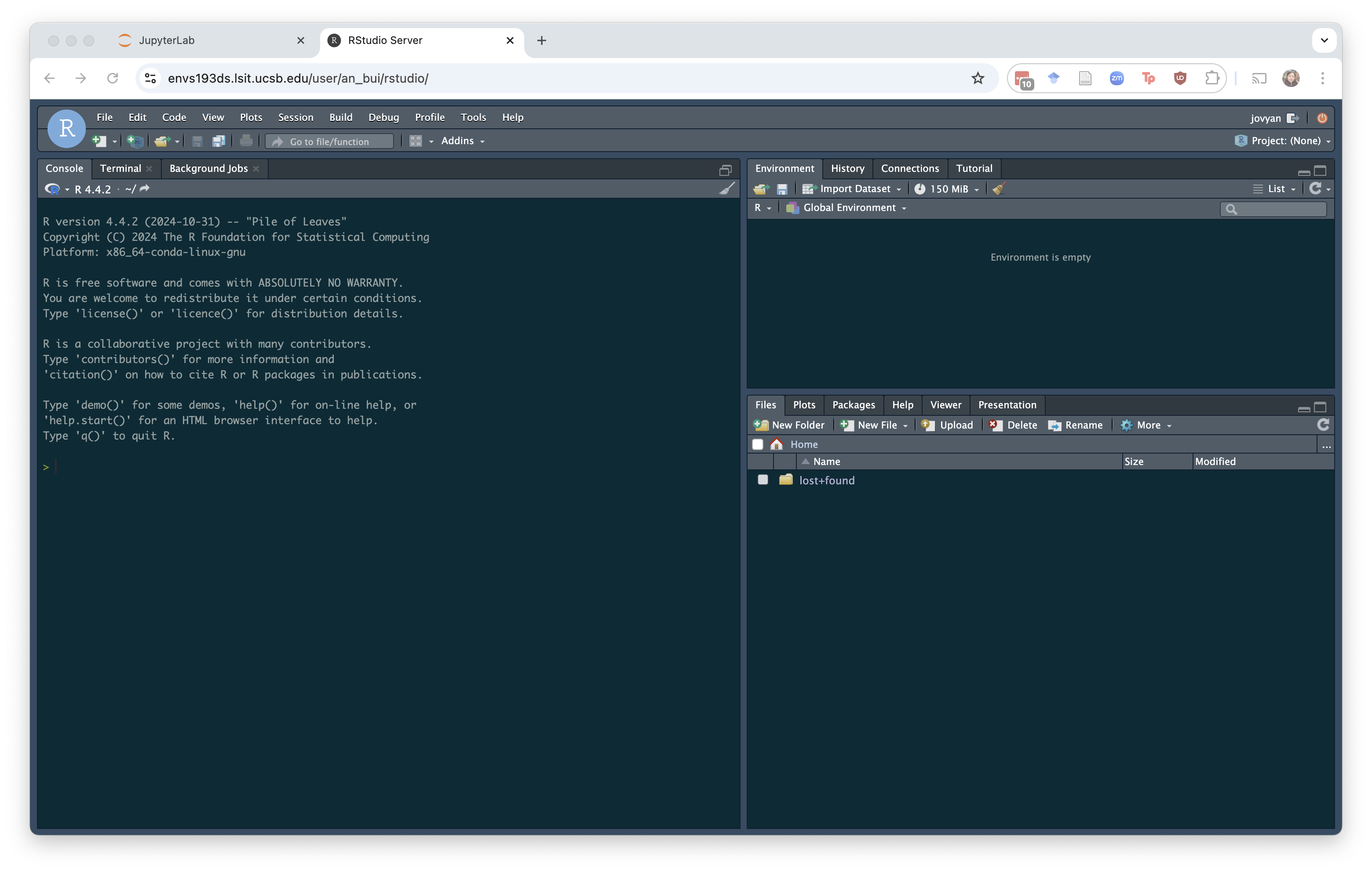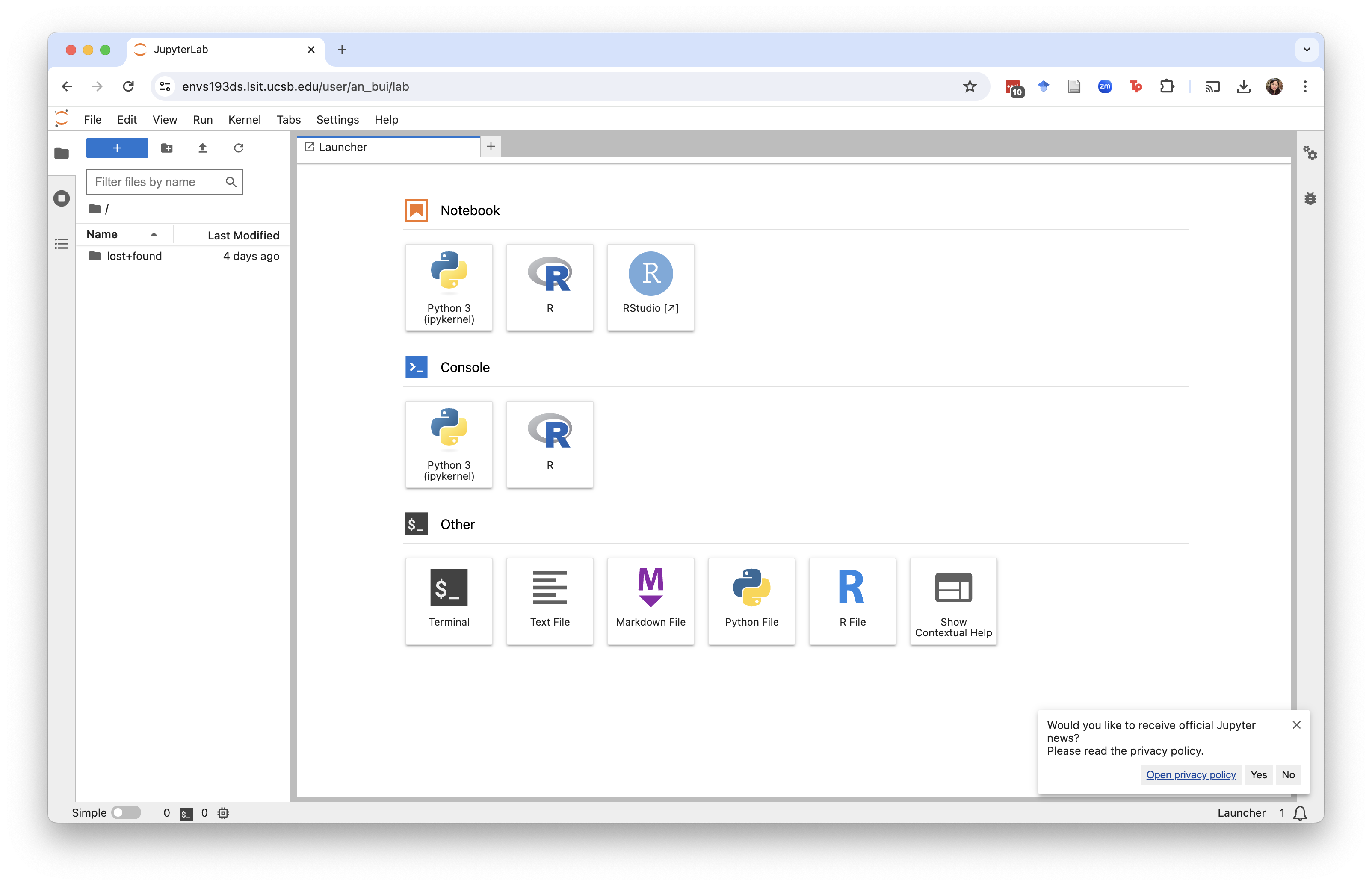 Once you open up the virtual machine, you’ll be asked to log in. Use your UCSB email to do that. You should then get a screen that looks like this: