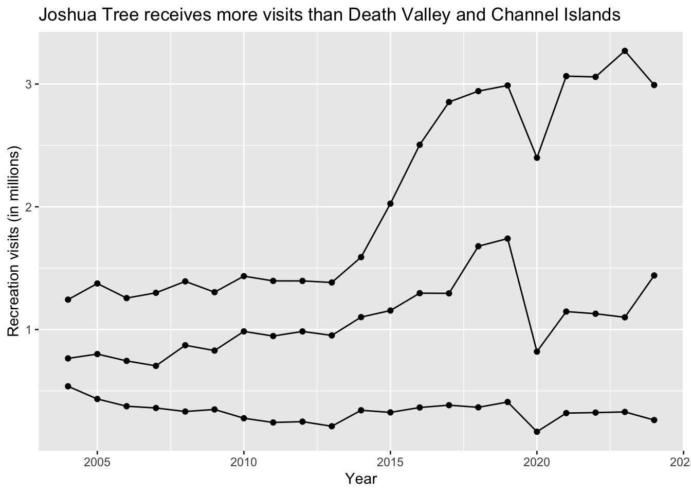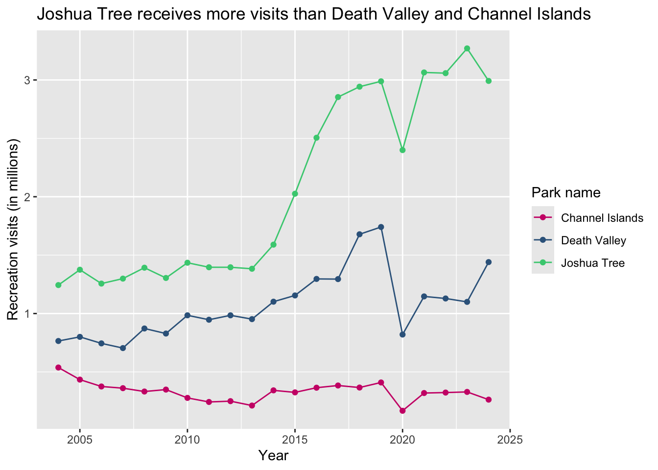 title = "Joshua Tree receives more visits than Death Valley and Channel Islands", # adding a title